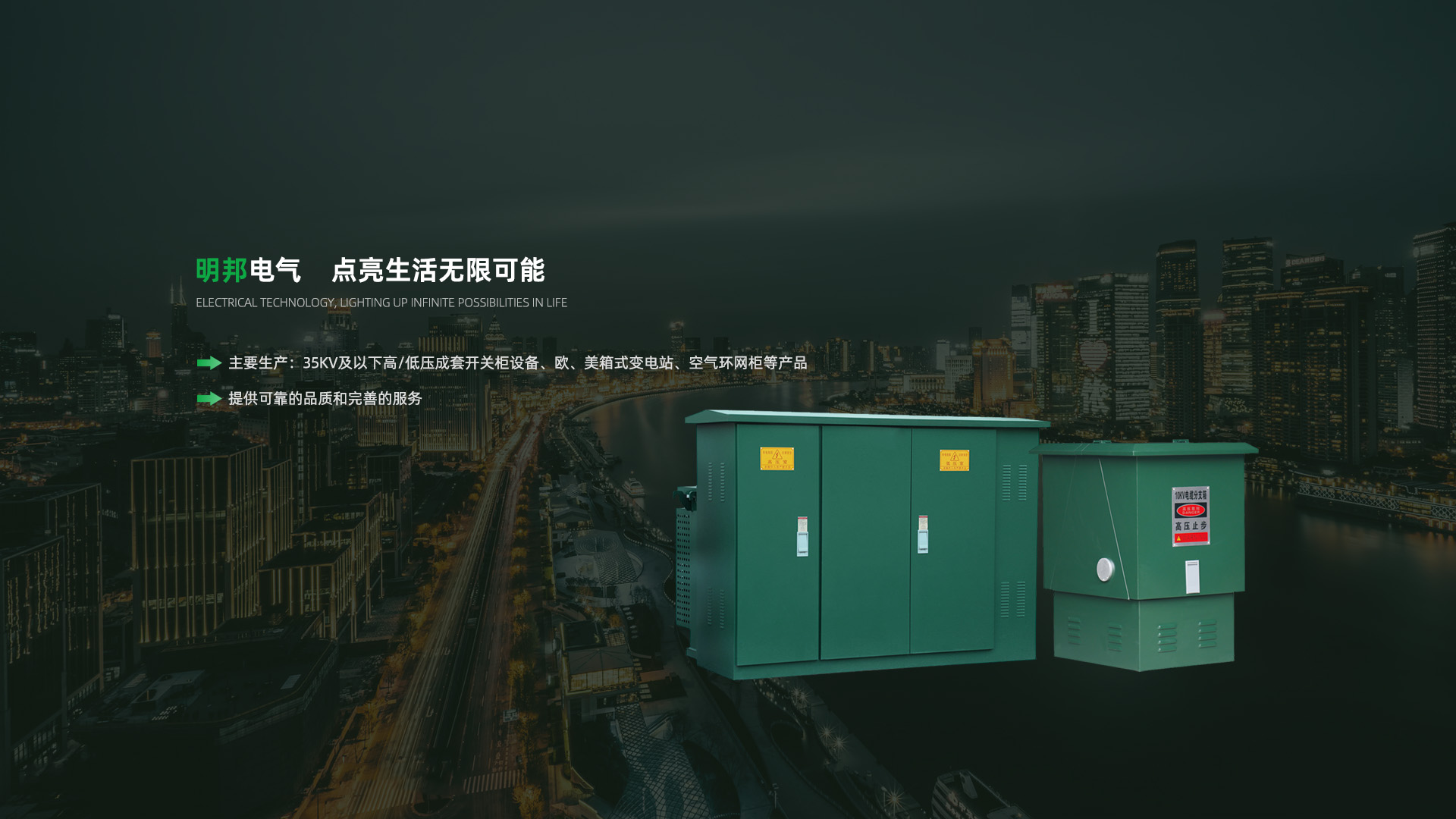 公司產(chǎn)品包括:35kV及以下高/低壓成套開(kāi)關(guān)柜設(shè)備、歐、美箱式變電站、空氣環(huán)網(wǎng)柜、全絕緣環(huán)網(wǎng)柜、固體環(huán)網(wǎng)柜、預(yù)制艙箱式變電站、電力變壓器、10~35kV電纜分支箱、10~35kV以下戶內(nèi)外高壓元器件、TBBZ-10電容柜等高壓電器產(chǎn)品。